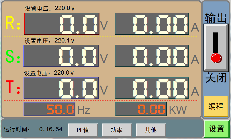 ? 超大7英寸觸摸屏顯示各項參數:電壓、頻率、功率、功因、電流、峰值電流、溫度、電量、時間、相位角、阻抗值及電壓和電流的實時曲線
